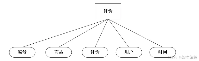 评价信息实体,主要包括评价编号,商品,评价,用户,时间 等信息实体。如图4.7所示: