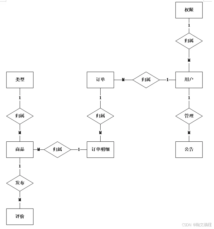 基于Android的青海特产销售系统中,实体有权限实体,用户实体,订单实体,订单明细实体,公告实体,评价实体,商品实体,类型实体等等,他们之间的关系如图4.10所示:
