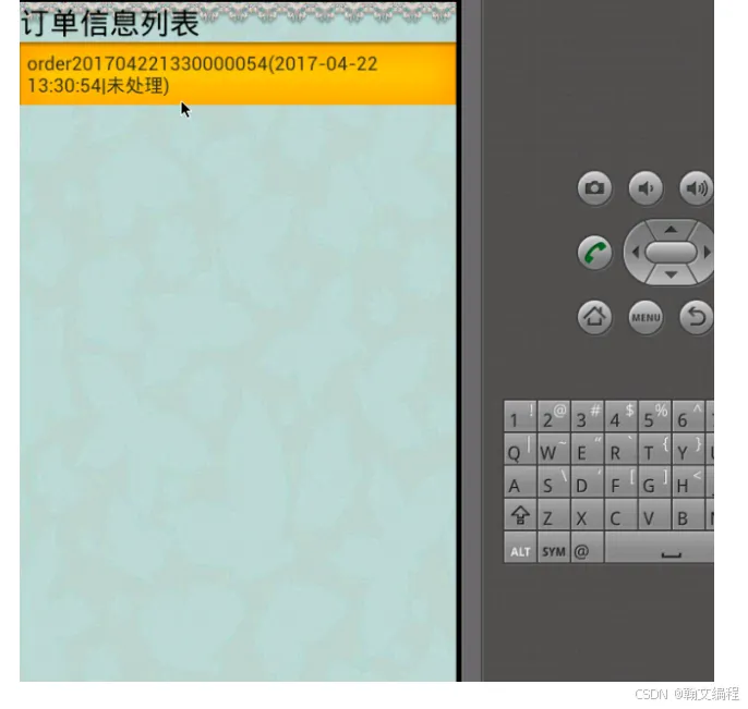.进入订单添加界面中,通过界面textview填入相关的订单信息,点“保存”,手机将数据以http方式方式传入服务端dingdanadd.jsp,服务端程序接收手机客户端传过来的数据进行获取,并组织插入数据库的sql句,插入订单信息,手机端订单查看,手机端程序进入订单功能程序功能菜单,查看已经存在的订单信息的程序,首先调用服务端dingdanlist.jsp,手机以http调用服务端 订单信息dingdanlist.jsp服务,获取以xml格式数据订单信息,并反馈客户端,安卓端程序接收数据,手机端通过解析订单xml信息,并理由gridview控件显示订单信息列表,如果需要查下看订单信息进入dingdandetail.java窗体类,当加载窗体类时,根据传入的订单信息编号,以http方式向服务端dingdandetail.jsp发送请求,服务端程序以xml报文协议的方式方式返回所要查找的订单数据,客户端程序解析xml数据并利用textview控件显示在手机端 4.订单明细手机端管理功能包括添加、列表、查看。