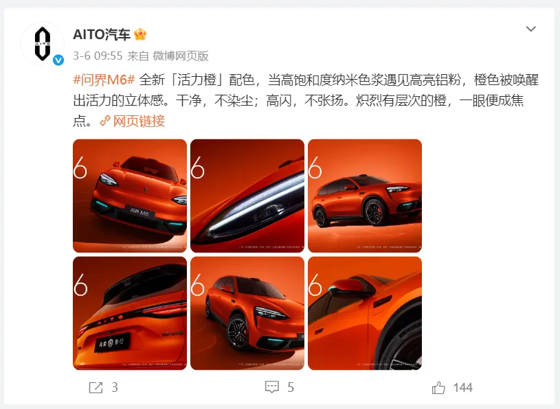 这里跟大家补充个小知识点,余承东早在2月份就预告了问界M6的全部车色,一共有7种,包括橙、白、黑、银、青、紫、蓝,还起了“财富紫由”“人间青醒”等趣味谐音名,贴近年轻用户。目前,“活力橙”“流光青”“星夜紫”和这次公布的“钛空银”四款配色,已经公开了外观高清图,每款都有专属格调,大家可以根据自己的审美和需求选择。