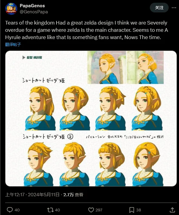 (来源 3DM)在推特上,游戏消息泄露者和内容创作者 PapaGenos 发布了一篇帖子,讨论了《塞尔达传说:王国之心》中塞尔达公主的角色设计。