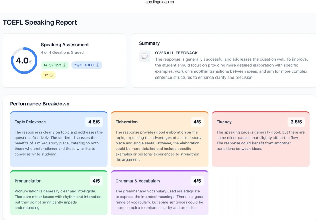 #lingoleap使用体验 #托福口语 #托福写作 #写作提升#AI测评#学习工具#Lingoleap #出分吧托福#留学