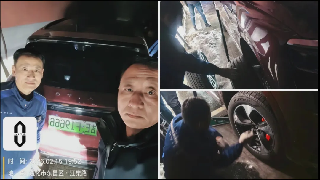 大冬天、夜里、造成拥堵、车还不敢开,这种情况出现在过年期间,肯定是个糟心事。无奈之下,他联系了买车时建的服务群,说明了情况。没想到不到30分钟,当地鸿蒙智行用户服务中心的服务经理,就带着维修技师过来了,最终给这位车主更换了备用轮胎。