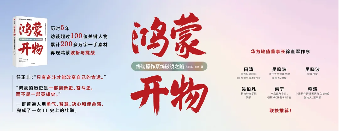 他还分享了鸿蒙研发背后的真实故事:揭秘“单框架与双框架之争”中任正非拍板走最难但最正确道路的抉择,讲述老一代科研专家与年轻工程师携手攻坚的代际传承,细数研发团队面对困境的坚守历程。