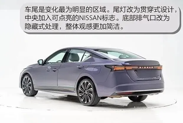 从外观来看,新款天籁的整体车身轮廓与之前相比变化不大,但在细节处进行了革新。前脸格栅摒弃了以往的横向镀铬装饰,内部结构改为横向布局,造型更显扁平,有效增强了视觉宽度。大灯下方的镀铬饰条采用了“展翼”式设计语言,与品牌旗下其他新车型的设计风格保持统一。