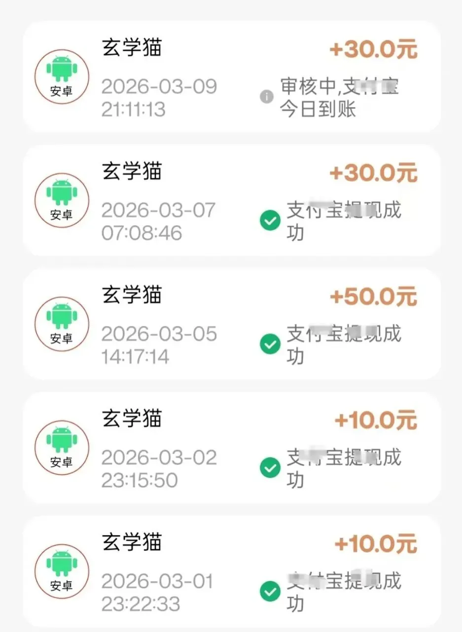 我自用长期在跑的苹果端老平台:玄学猫,都是上线很久、稳定不崩的老牌,不搞虚的,每天正常做任务、看广告,几十块稳稳入账,蚊子再小也是肉,日常奶茶钱、零花直接覆盖。