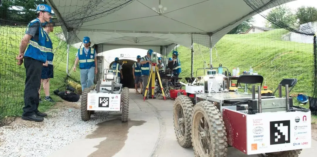 DARPA Challenge 是大概五年前的事了。当时我们这套系统快要搭好,相当于给学校团队提供技术,运用其中部分模块参加了比赛。它是地下挑战赛,在一个比较难处理的地形环境里,路面不平整,有各种各样的障碍物、水,各类机器人需要在地下做探索、找东西。它主要考察的是机器人系统整合起来的整体能力。当时运用了多辆车、波士顿动力的机器狗以及无人机,也算是有收获,获得了“探索最多区域奖”。