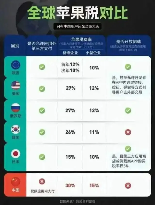 这么多年以来,苹果在中国对普通开发者抽30%,中小企业15%,不管国外怎么降,中国市场就是“铁板一块”。