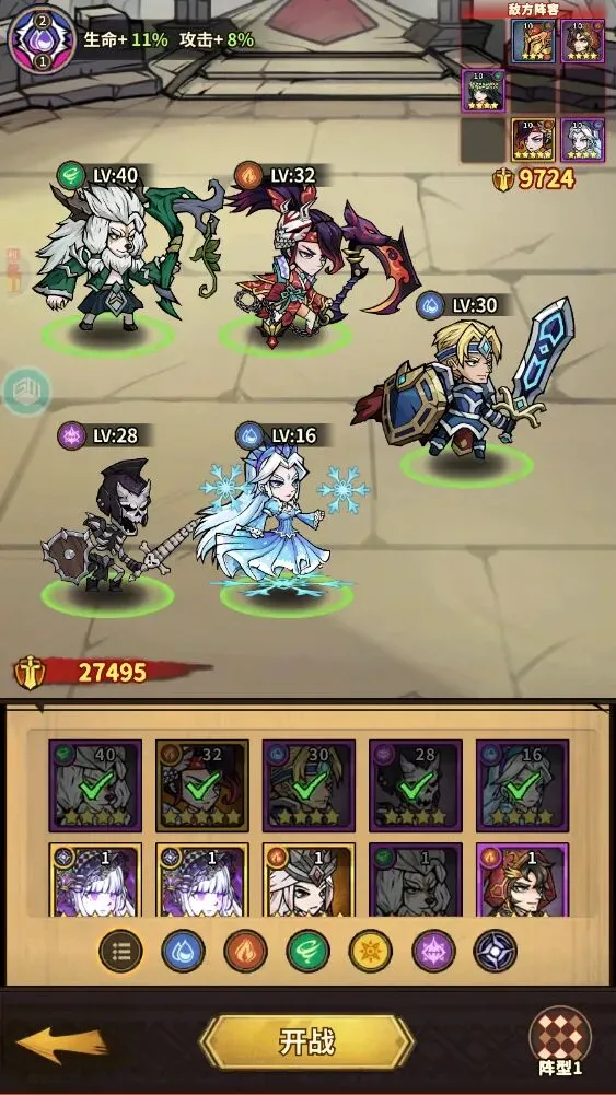 3、下面就是进行主线关卡战斗了,上阵英雄后可以直接进行战斗了,随着等级的提升可以解锁战斗切出模式