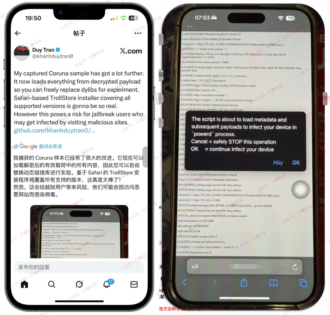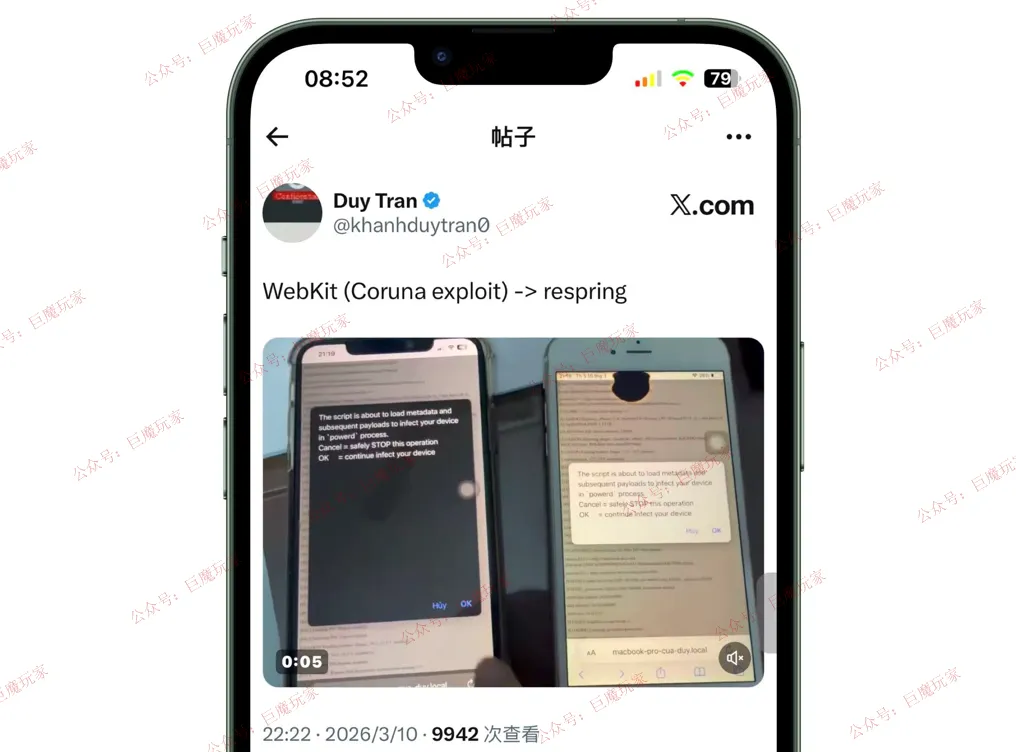 hi果粉们,好消息!前几天 Coruna 漏洞利用,今天又有了新进展。