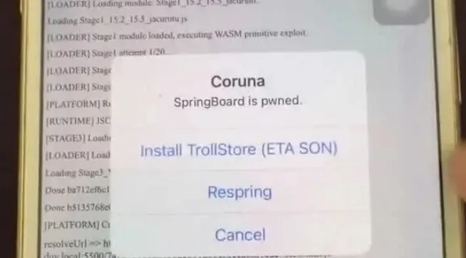 展示了 Coruna exploit 利用,实现执行完后 Respring 重启效果。
