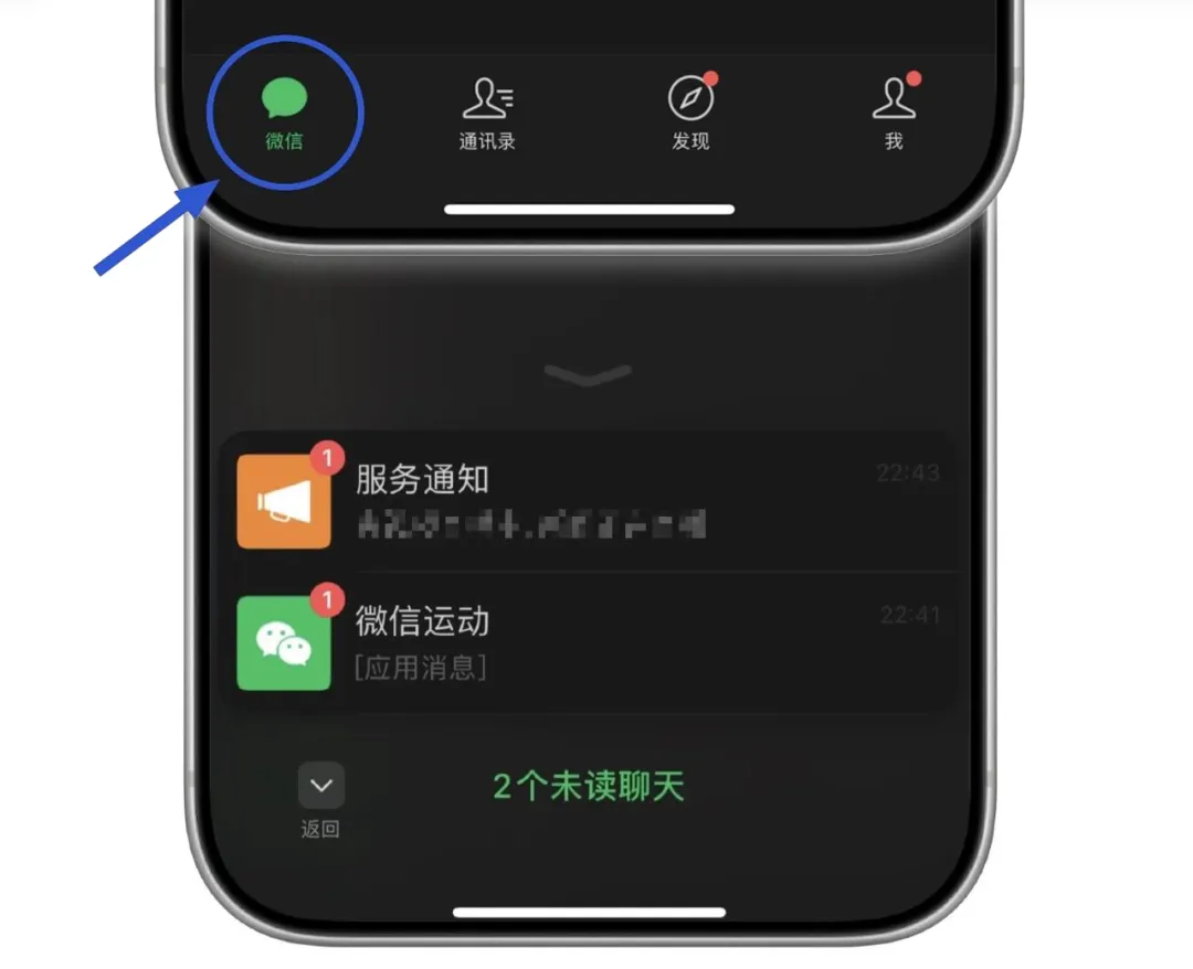 不过这个界面变化还处于灰度测试中,仅限于部分「天选之子」才能体验看到此功能,大家想要看自己是否有这个功能,不妨在有未读消息的时候,双击底部的微信按钮试试。