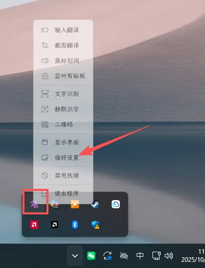 这款工具在GitHub上是开源的,大家可以放心使用。它具有多接口,多种语言翻译,一键截图ocr翻译等功能,非常强大好用。如果你的电脑没有.NET程序,它会提示你安装,按照提示安装即可在桌面右下角状态栏找到软件的图标,右键找到偏好设置,就可以进入软件的设置界面。