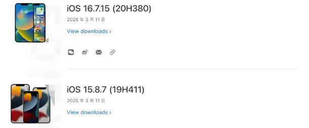 注意:新款iPhone已升级到iOS 18或iOS 26,在更新里是找不到这两个版本的,也别想着靠这个办法降级回去。