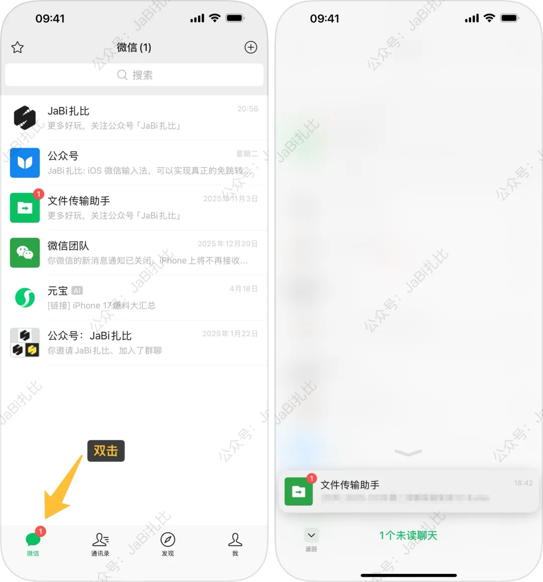 不知道有多少小伙伴像扎比一样,当微信有新消息时,习惯通过双击底部导航栏的「微信」标签项,来快速定位到该消息位置。