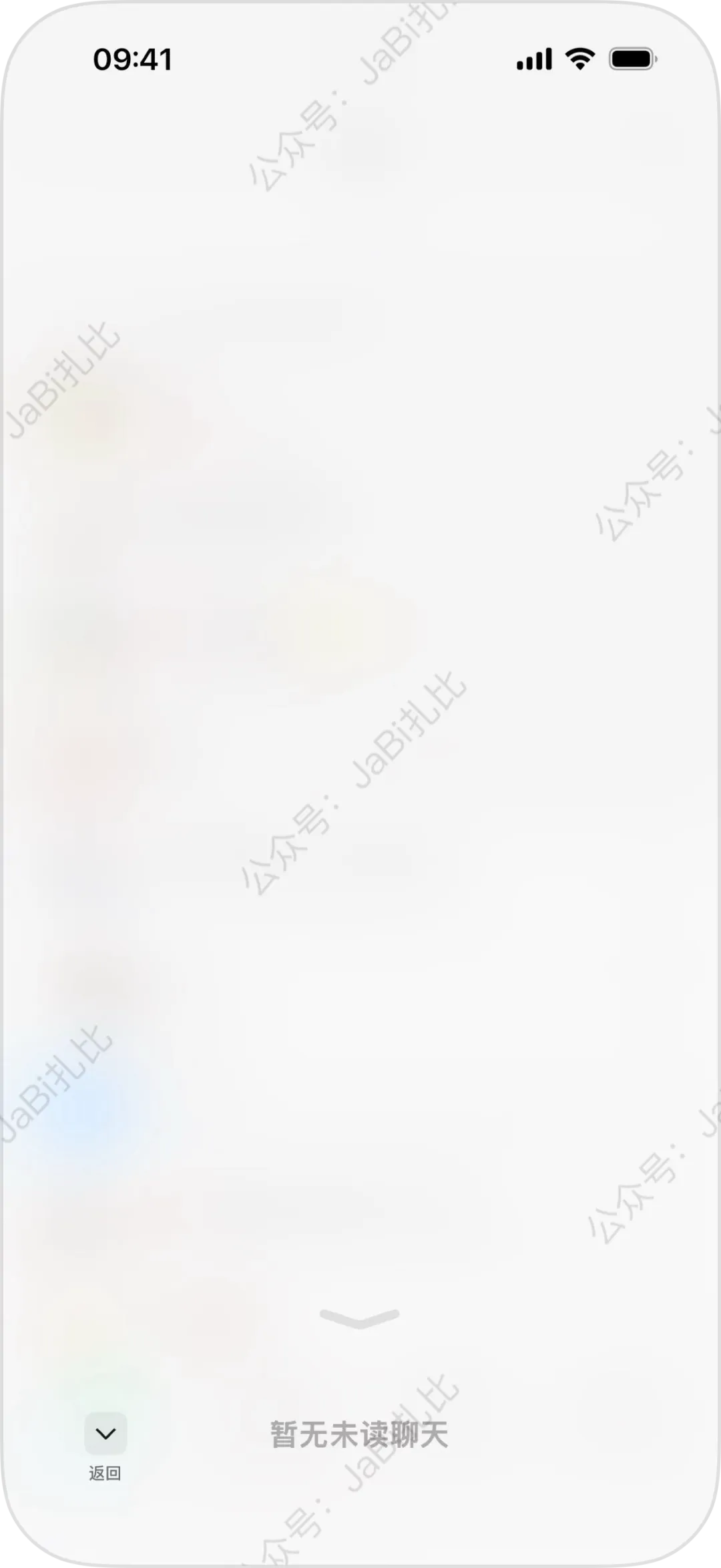 这是一个类似半屏弹窗的界面,界面中直接整合显示所有未读消息。用户通过此操作,可以在列表众多消息中,直接查看未读消息。如果没有未读消息,双击后该界面也会弹出,但会显示为「暂无未读聊天」。