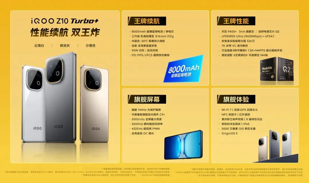 排名第四的是OPPO Reno14 Pro,它的平均跑分为208万+,该机搭载天玑8450处理器,12GB+512GB版到手价2804元。对于预算紧张的小伙伴,OPPO Reno14 Pro也是个不错的选择,不仅有满级防水和5000万潜望式长焦,还有50W无线充电和不错的性能表现。排名第五的是iQOO Z10 Turbo,该机搭载天玑8400处理器,它的平均跑分为199.5万+,12GB+256GB版到手价1444元。对于极致性价比用户,这个价位段首推iQOO Z10 Turbo+,目前该机的价格已经在上涨,有需求的小伙伴且买且珍惜吧。