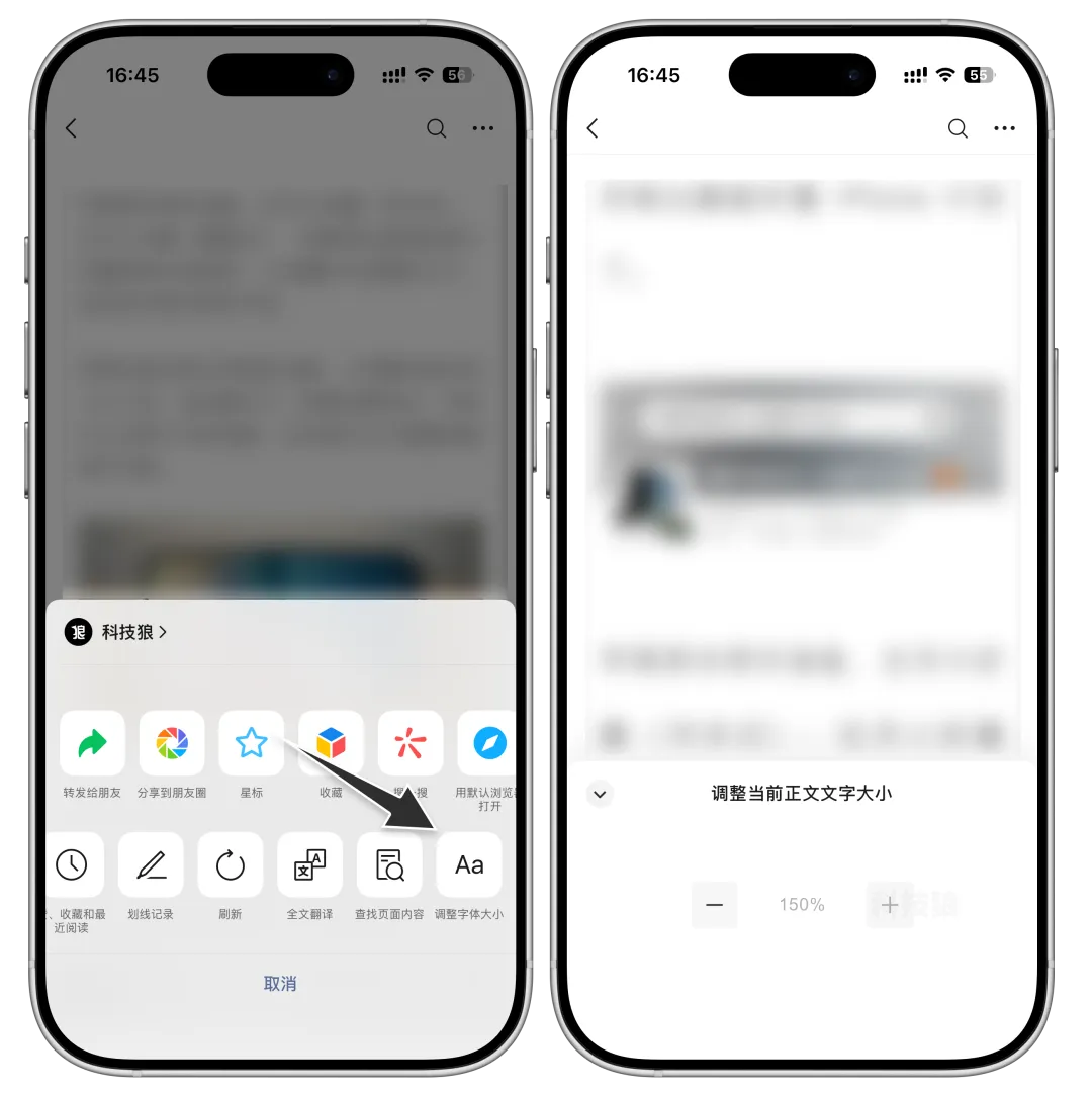 近期,iOS微信针对高频使用场景进行两项灰度更新,并对界面进行了升级改善,目前处于灰度测试阶段。首先是公众号文章字体调节功能界面变化,阅读文章时,右上角菜单的“调整字体”功能,从滑动条改为90%-150%分级调节(每档10%),方便更清晰了解比例。