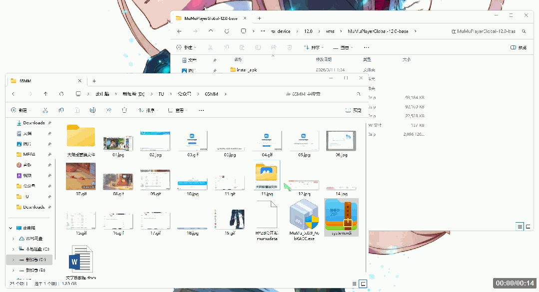 🚩2、将下载好的“system.vdi”拖入刚刚打开的 “nx_device\12.0\vms\MuMuPlayerGlobal-12.0-base” 文件夹。↓