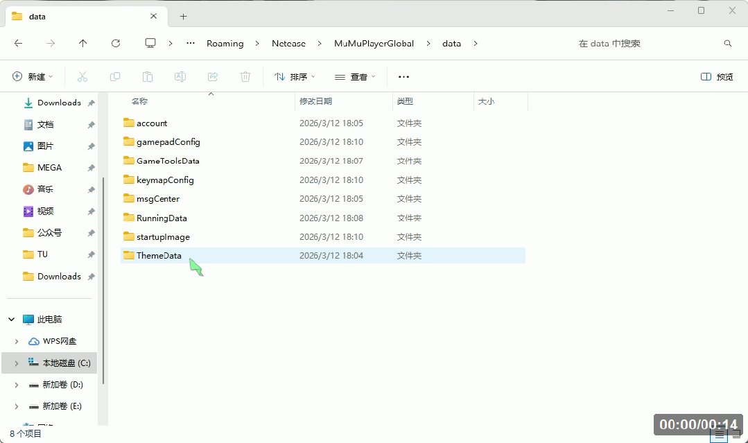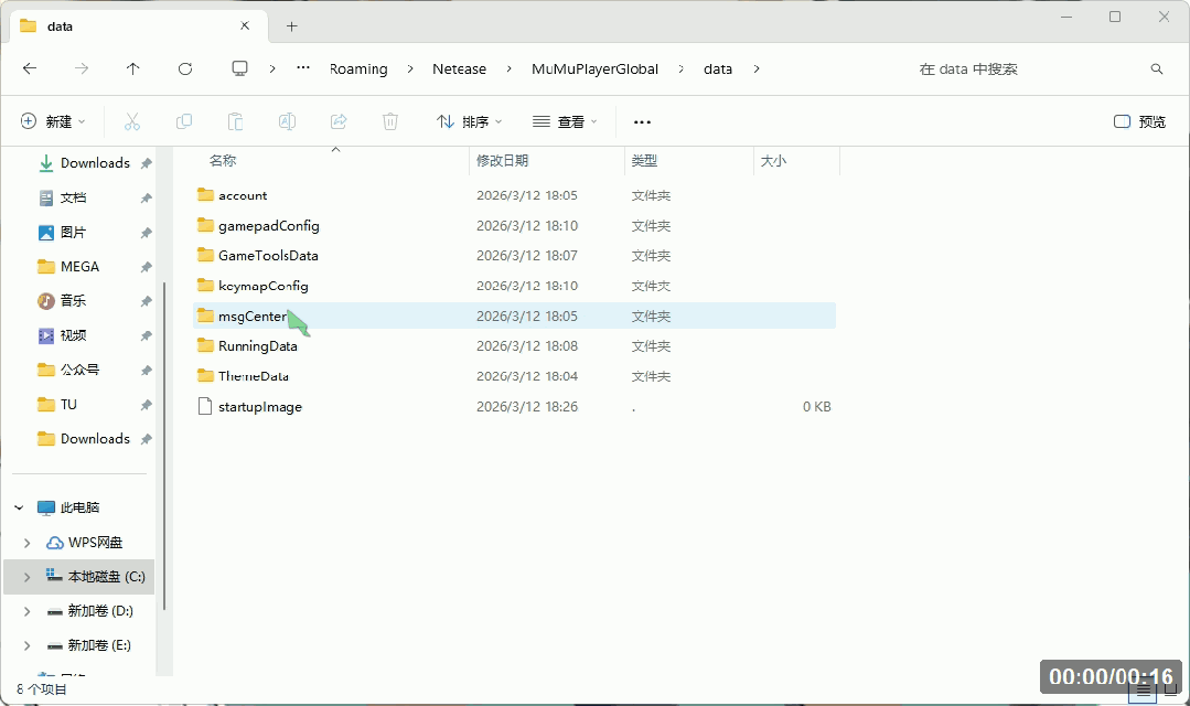 🚩3、进入 “C:\用户\<你的用户名>\AppData\Roaming\Netease\MuMuPlayerGlobal\data” 文件夹↓(将<你的用户名>替换为你电脑的用户名)