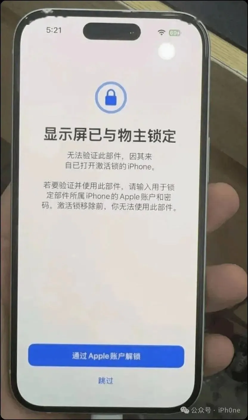 例如,如果用户的手机屏幕损坏,需要更换屏幕,那么在更换了其他iPhone的拆机件原装屏幕后,系统会提示“显示屏已经与物主绑定”,需要输入原物主的Apple ID才能完成验证。这无疑给用户带来了不便。