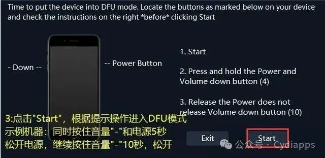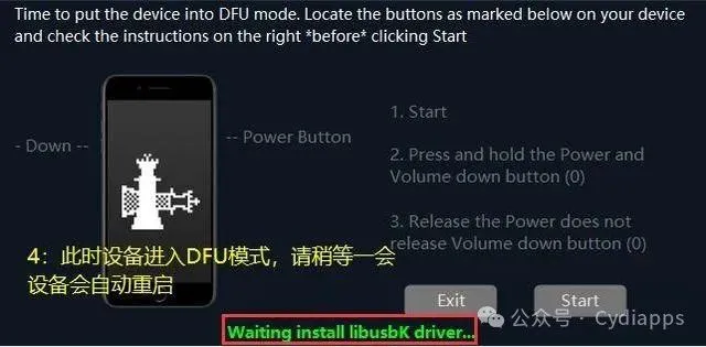 接下来按照提示准备进入DFU模式,