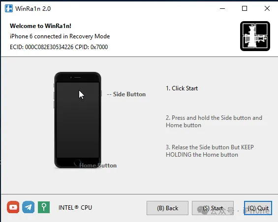 注意:是DFU模式,不是恢复模式。
