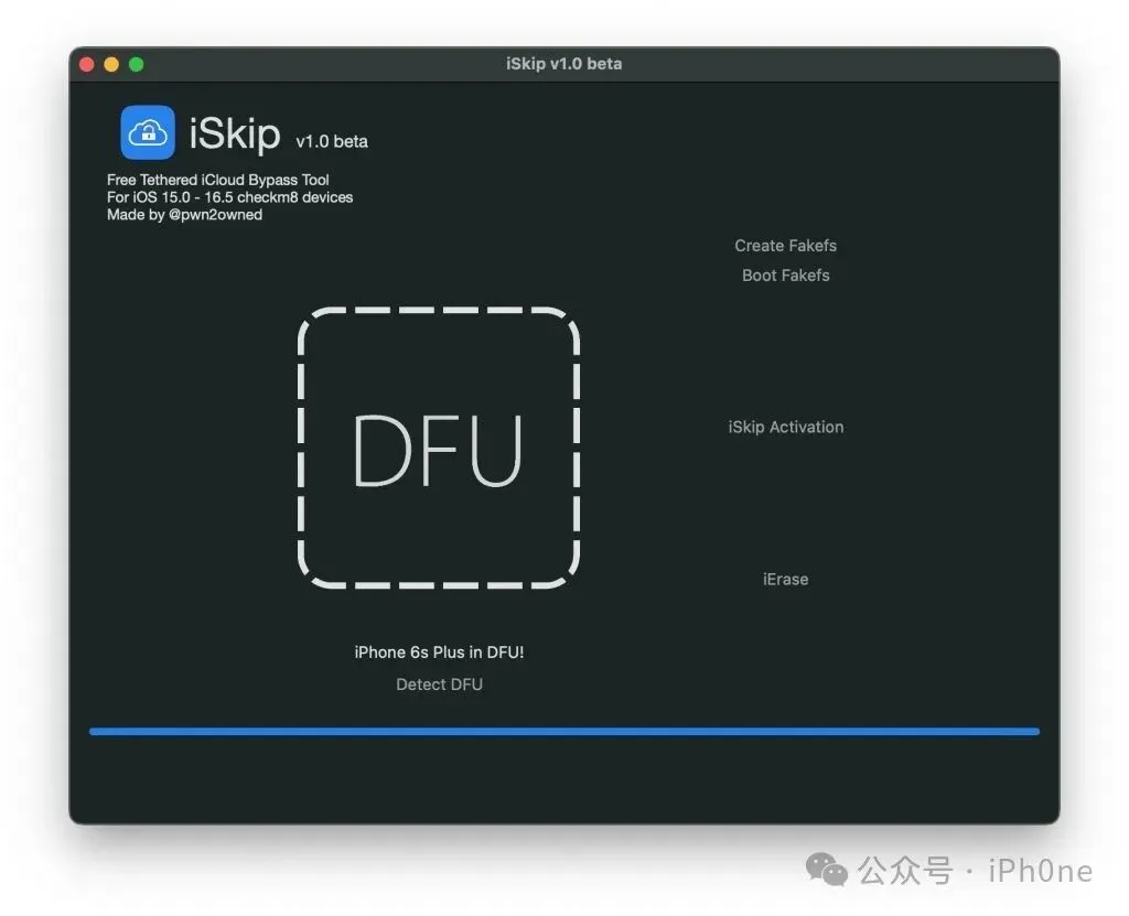 3,连接要绕过的设备,并且把设备进入DFU模式,
