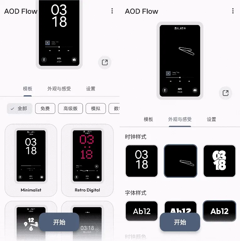 AOD Flow 是专门给 AMOLED/OLED 屏幕量身定做的息屏显示工具,它可不光是用来瞅时间的,简直是让黑屏焕发了第二春。这软件主打的就是个性和好用,动态表盘样式多到挑花眼,不管是喜欢极简数字风、复古机械范儿,还是那种很有艺术感的设计,随手一换就是新界面,黑屏再也不会觉得枯燥了。