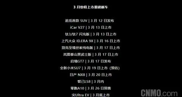 三月的新能源圈简直热闹得像过年赶集,各家车企都憋着劲儿要在开春这波上新潮里露一手。咱们今天就掰开了揉碎了聊聊这些即将亮相的新家伙,特别是那些带着鸿蒙智行光环和比亚迪独门绝技的狠角色,保准你看完心里直痒痒。