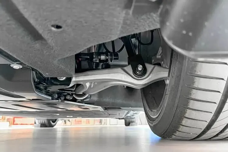 既然大家最关心空悬,咱们就重点聊聊这个。由于是静态实拍,没法开上路去体验,但我趴下来看了看底盘的结构,也跟销售小姐姐仔细聊了聊这套系统的门道。