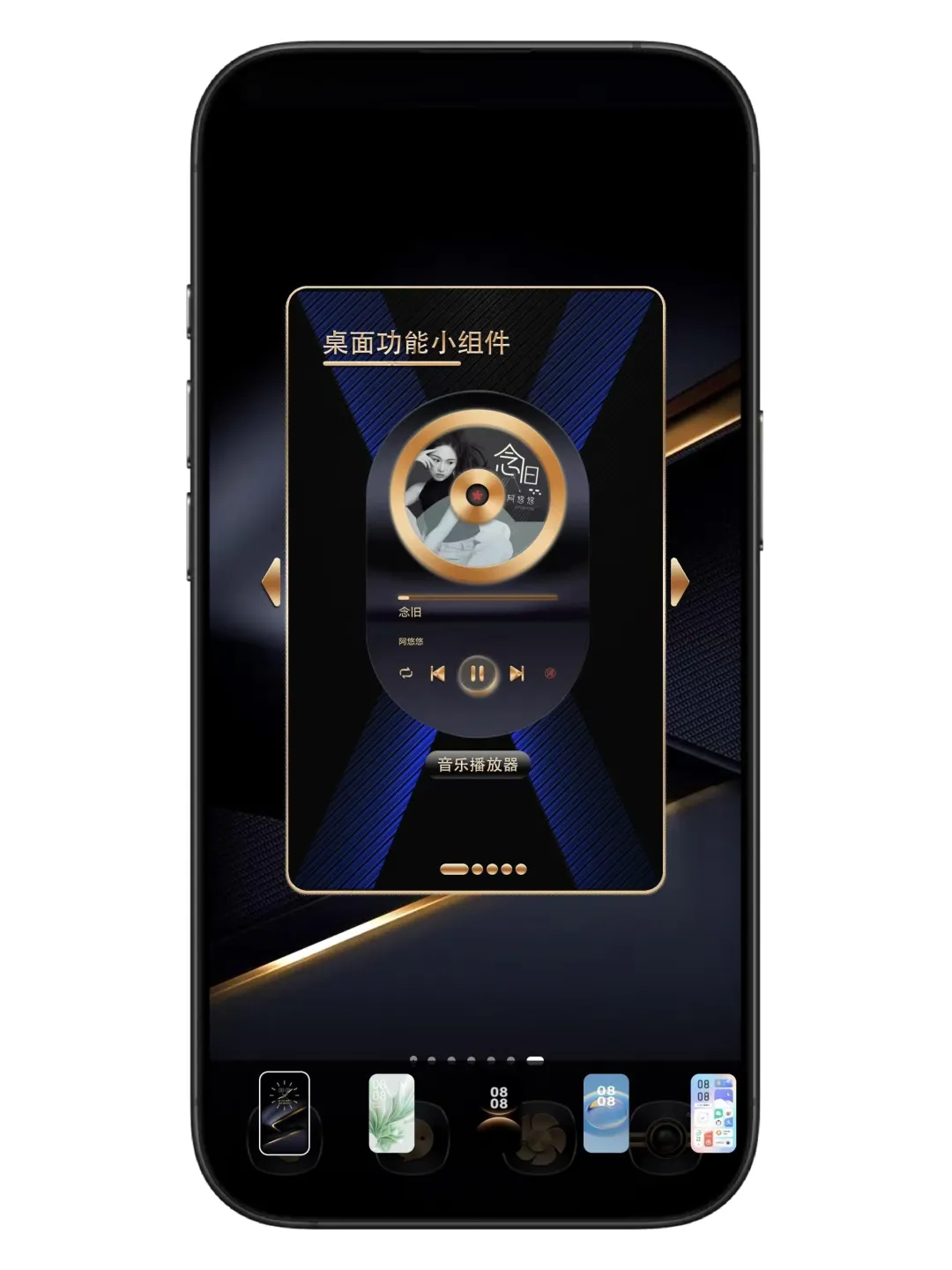 这个主题最戳我的是桌面组件丰富到尖叫:天气组件实时显示温度和天气,金色图标和主题超搭;音乐播放器组件直接在桌面控制歌曲,听歌超方便;还有日历、步数、地图等组件,信息一目了然,实用性和颜值并存!再也不用翻找应用,效率直接拉满~