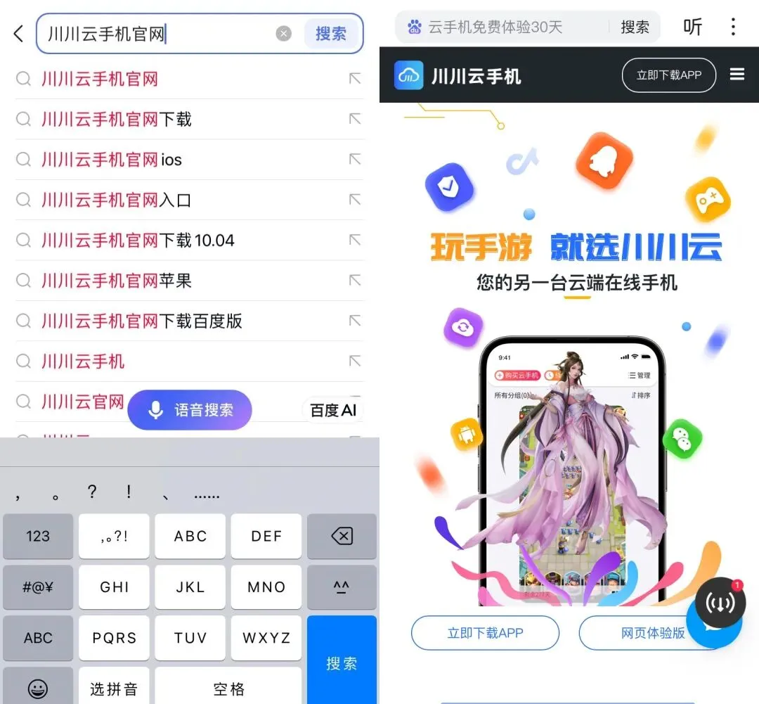 1. 下载安装:在safe浏览器搜索“川川云手机官网”,下载并安装官方App。