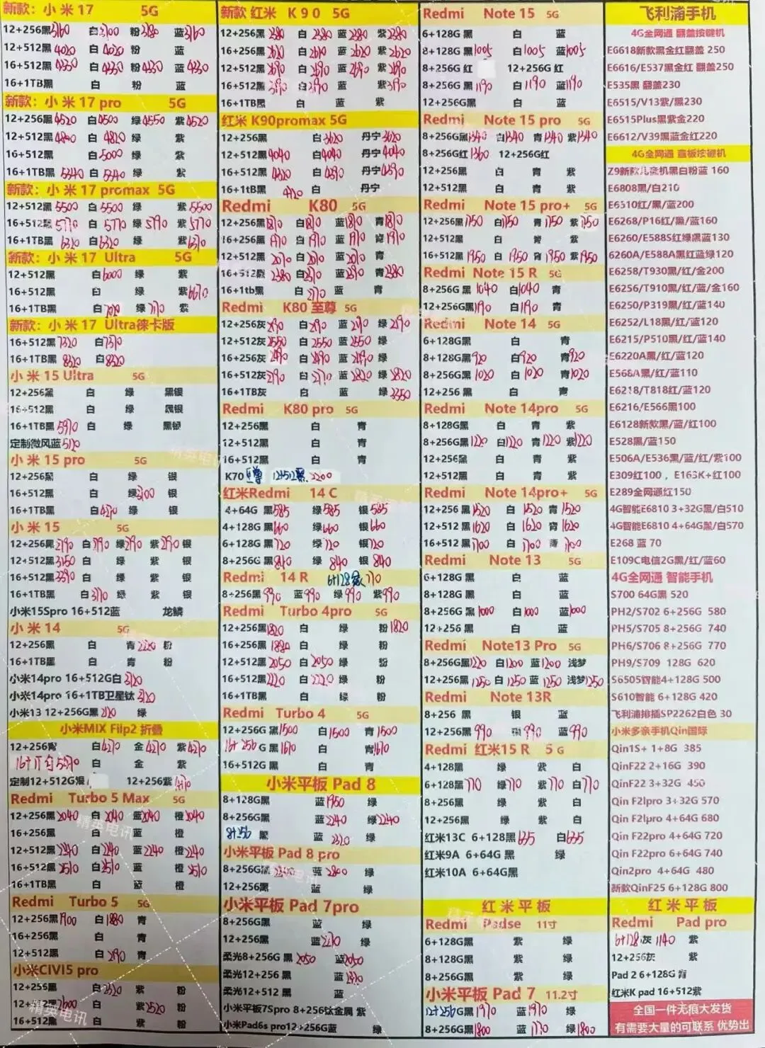 以下报价都是深圳华强北手机批发市场当天的最新批发价格(不含税),报价是我们的批发底价,零售拿货价格需加20~100元不等,京东包邮(量大价格可谈)