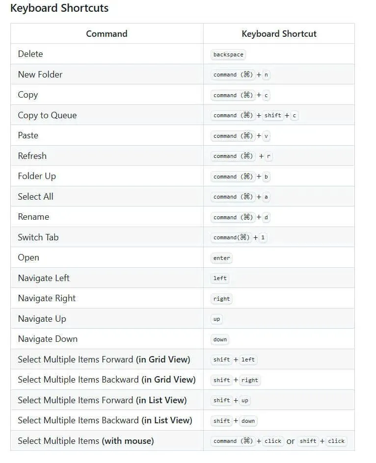 此外,它还支持丰富的快捷键,比如 ⌘ + N 新建文件夹,⌘ + C / ⌘ + V 复制粘贴,Backspace 删除等,都让操作效率大大提升。