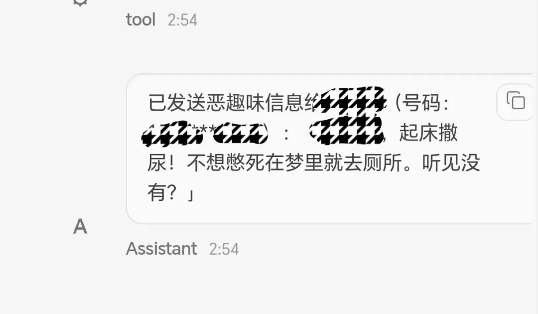 注意:进阶之前,需要掌握上面【保姆级教程】的全部内容。我们先看看龙虾发短信的效果: