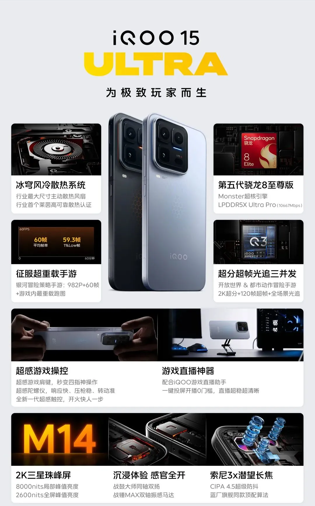排名第一的iQOO15 Ultra,它的平均跑分为420.8万+,比第二名(416.5万+)高出约3.5万分,比1月份的冠军(410.4万+)高出约10万分。从详细跑分榜单来看,iQOO15 Ultra在GPU、MEM(存储)和UX(显示)上都有明显的优势,它们分别对应的是自研电竞芯片Q3、LPDDR5X UltraPro和三星2K珠峰直屏。该机的价格还可以,16GB+512GB版到手价5499元,非重度游戏用户可以选iQOO15,喜欢影像和游戏的用户可以等等vivo X300s。