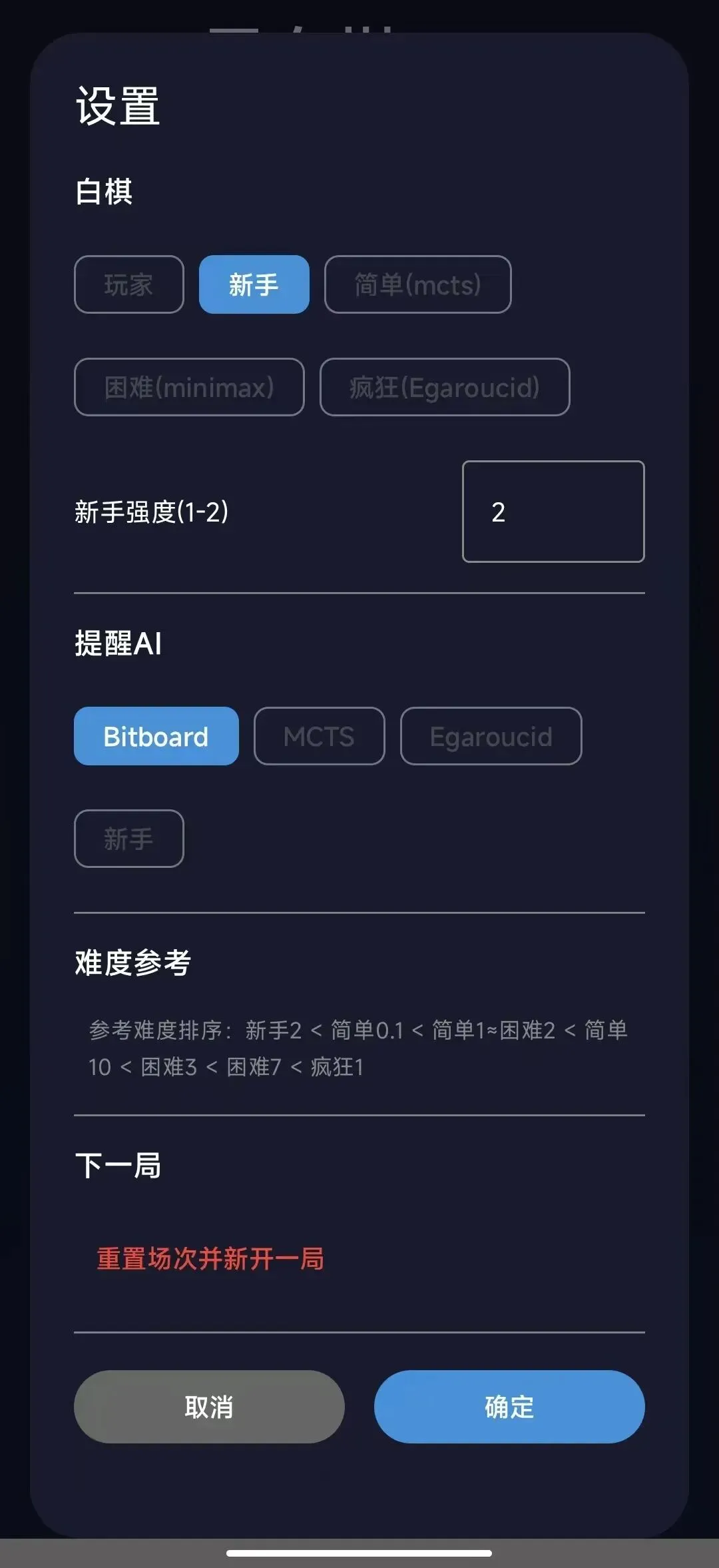 软件的可玩性直接拉满,自带5 档难度模式:玩家对战、新手、简单、困难、疯狂,从入门到高阶全覆盖,还能自定义 AI 落子间隔、每局场数,新手可以从简单模式练手,慢慢熟悉规则;老手直接冲疯狂模式,和高智能 AI 博弈,烧脑又解压。更贴心的是,软件还有 AI 落子提醒功能,就算是零基础小白也能快速上手,全程单机离线运行,没有任何广告弹窗,体积小巧不占内存,手机、电脑都能装,开飞行模式也能畅玩,摸鱼时玩一局,老板路过也不怕,打发时间还能锻炼逻辑思维,一举两得!