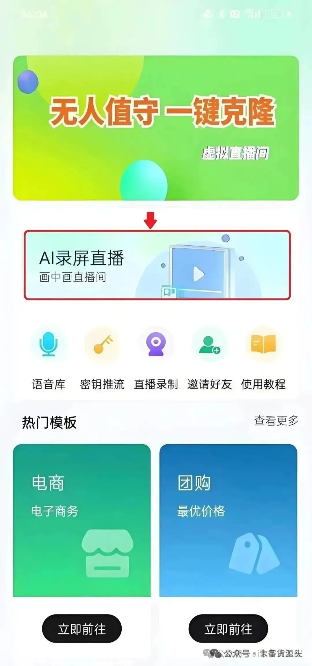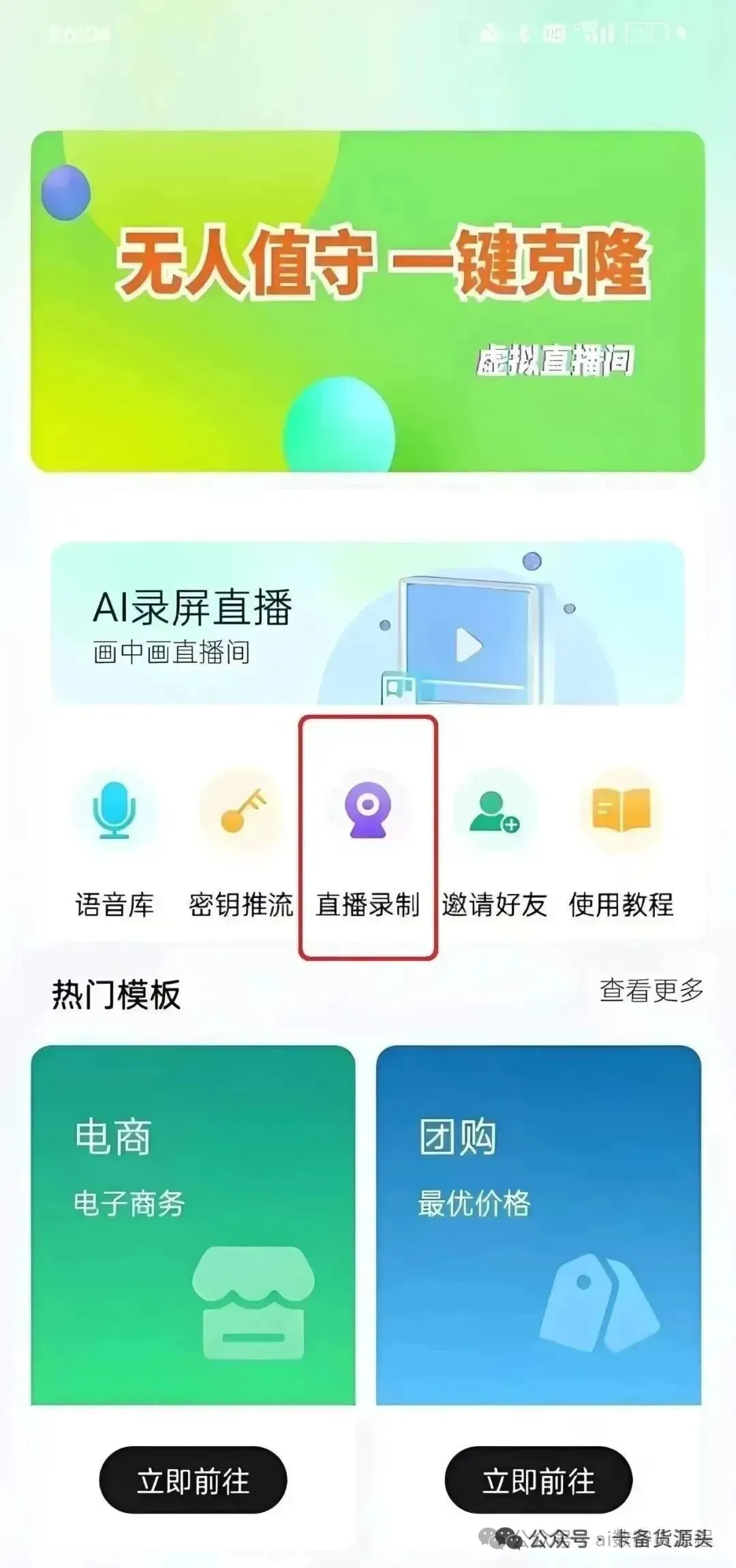 第一步:点击录屏直播