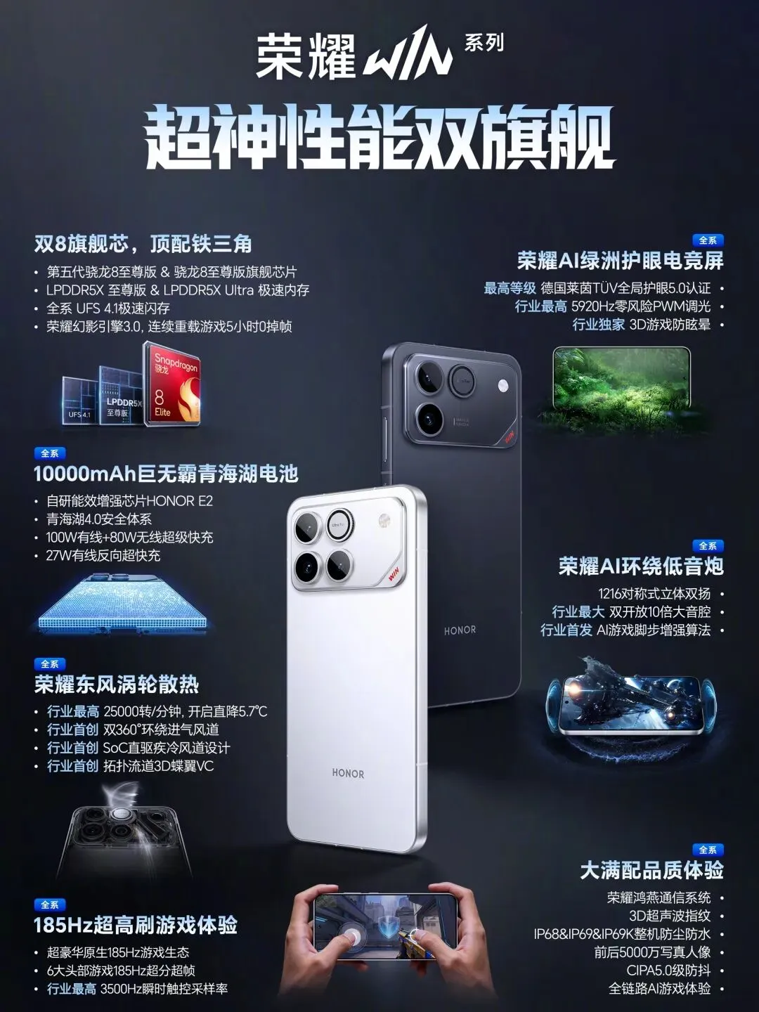 紧随其后的是荣耀Magic8 Pro和荣耀Magic8,它们的平均成绩分别为389.3万+和386万+,其中荣耀Magic8到手价为3976元,核心卖点是6400万超夜神长焦和6.58英寸旗舰中屏。如果对影像和体验有更高的需求,5170元起的荣耀Magic8 Pro了解一下,核心卖点是2亿超夜神长焦和安卓阵营唯一的3D人脸解锁,同时在续航和体验上也有不同程度的提升。如果对续航有极致的追求,排名第九的荣耀WIN了解一下,拥有10000毫安时电池和主动散热风扇,16GB+512GB版到手价4298元。