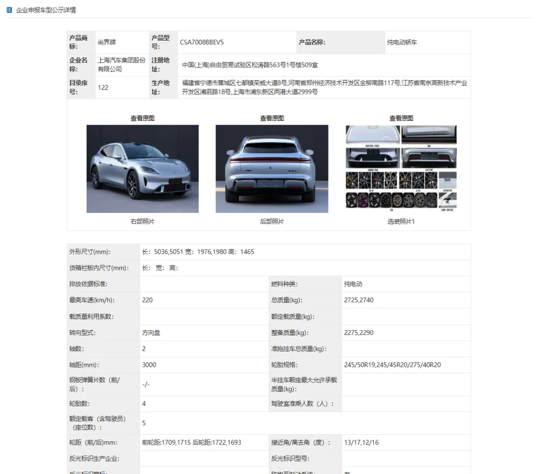 尚界报送的汽车信息终于公布了。之前都是各类PPT测试,AI冬测,大家见不到实车照片,现在工信部的名单终于出来。大家可以看看具体的参数。
