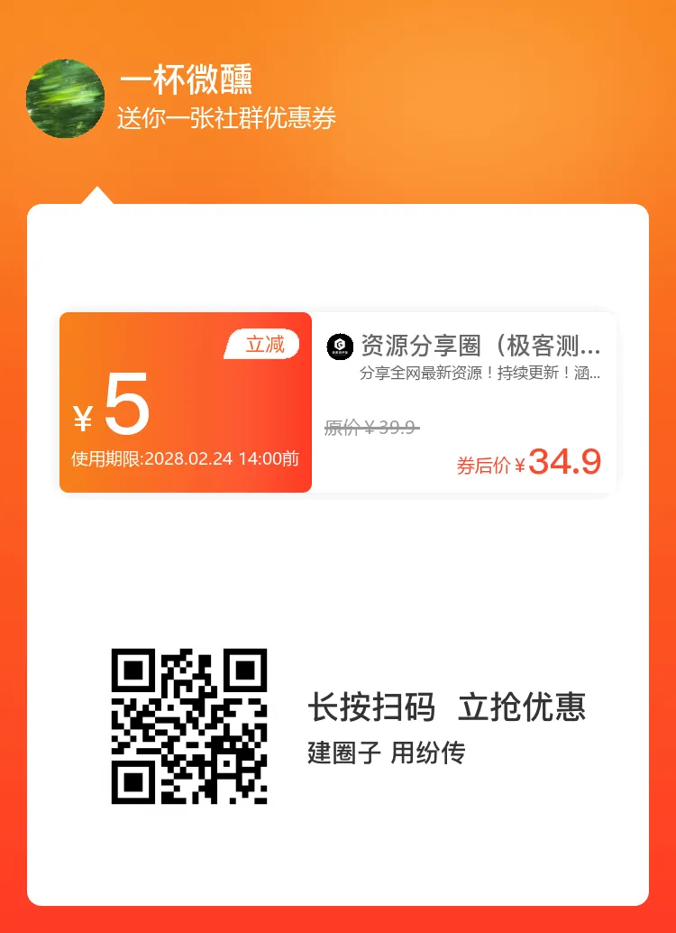微信扫描下方二维码领取限时优惠券加入圈子