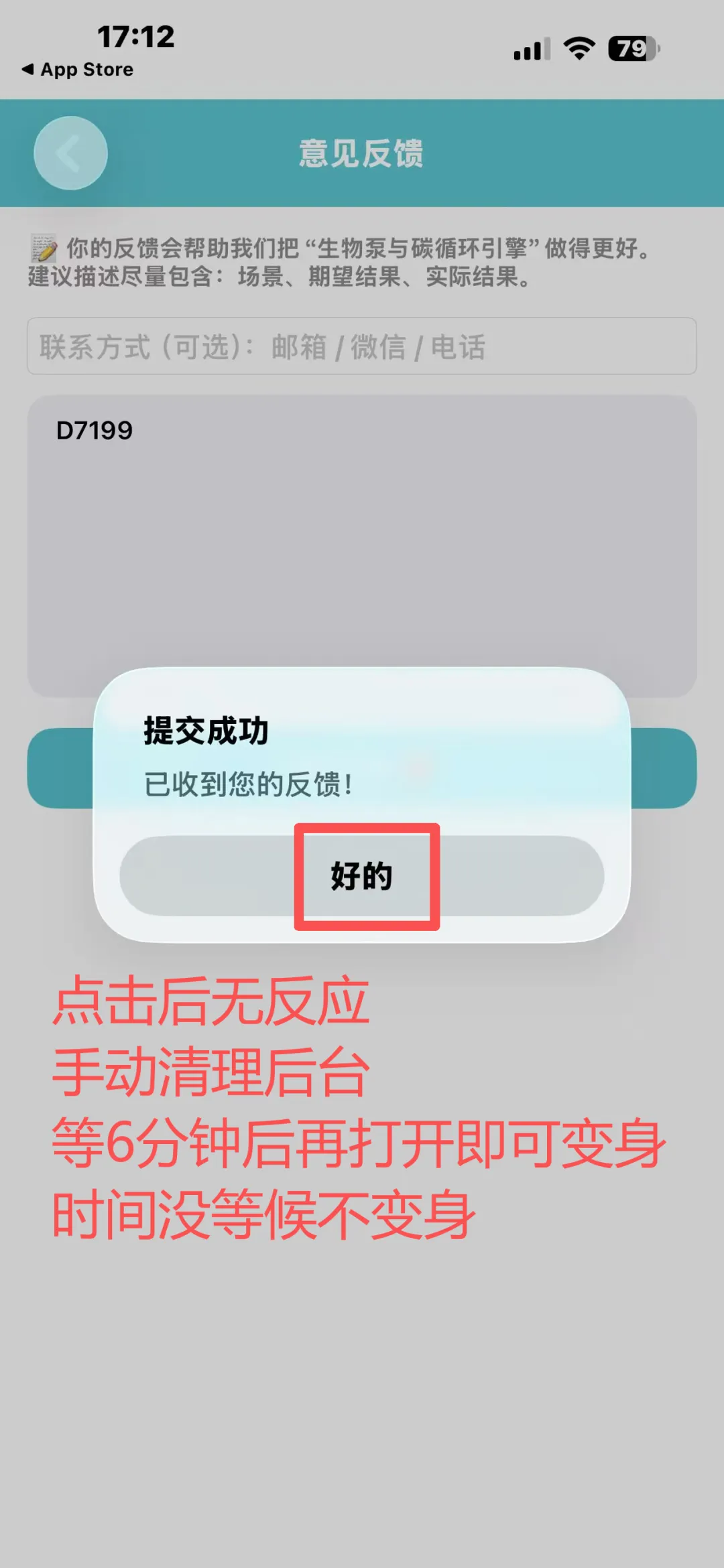打开-点击意见反馈-输入D7199-点击提交-出现提示后点击好的-软件无反应-手动清理后台等5分钟后再打开--即可变身成功(打开后稍微等一会)