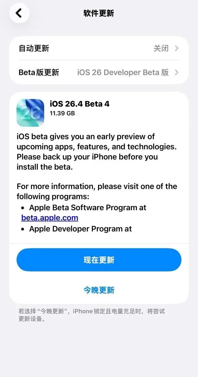 iOS 26.4 Beta 4来了:信号满血复活,低电量模式彻底不卡,到底值不值得冲