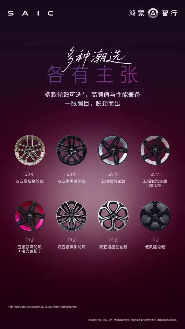 轮毂方面也给足了选择,多款20英寸轮毂可选,无论是简约大气款还是运动潮流款,都能满足年轻人的个性化需求,不用额外花钱改装就能打造专属风格。