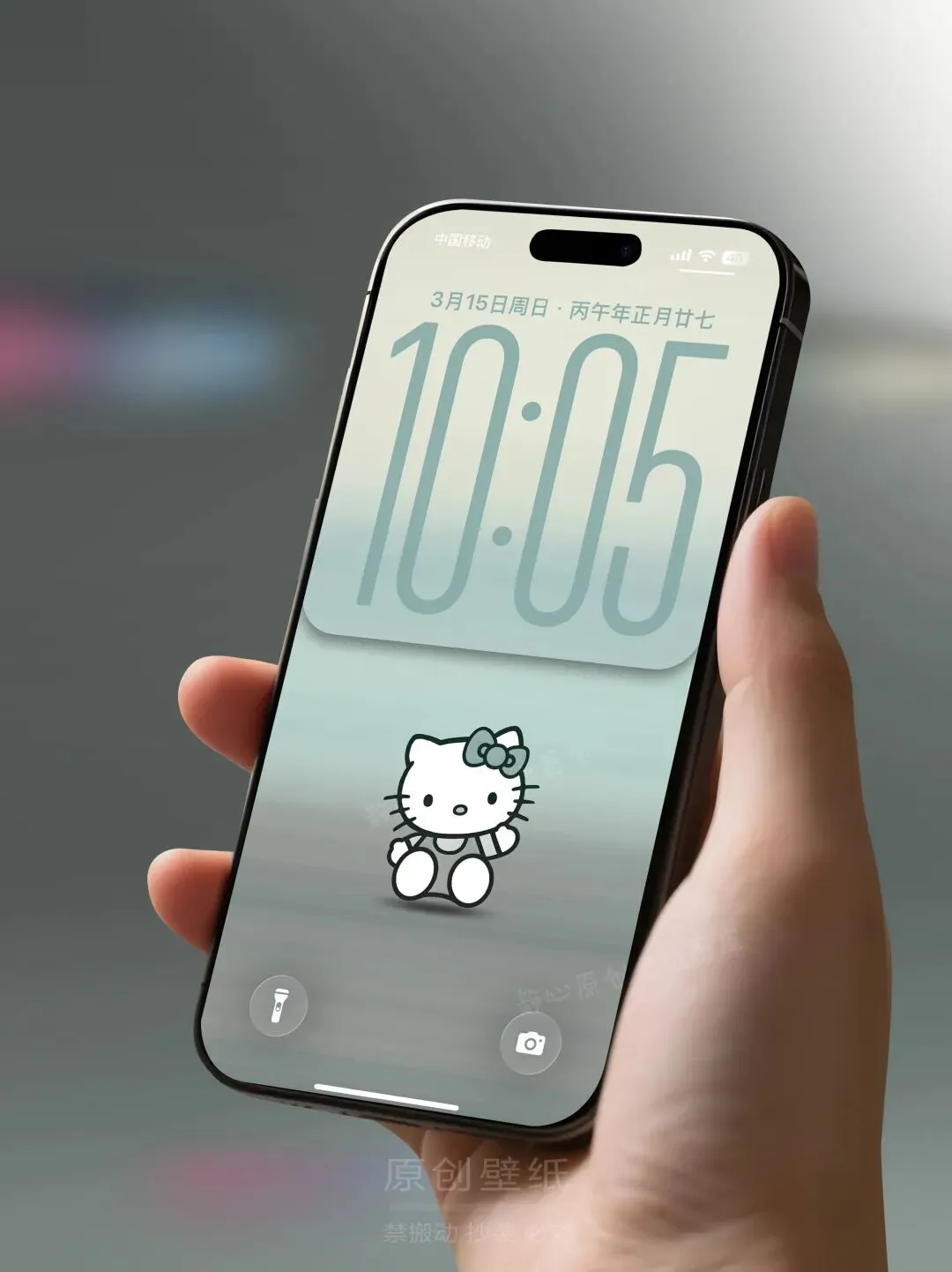素雅灰古韵柔和HelloKitty ios26简约趣味手机壁纸