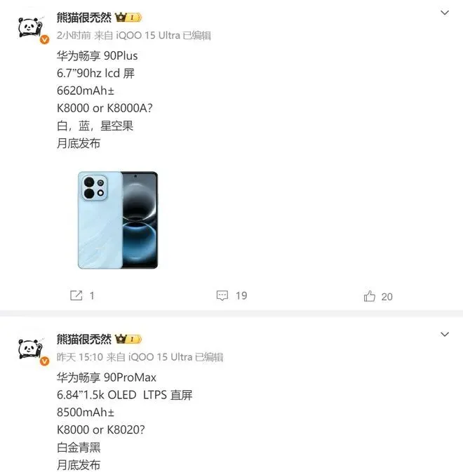 芯片方面,畅享90 Pro Max预计将搭载麒麟8000或麒麟8020芯片,甚至有消息称可能是一款全新的芯片。