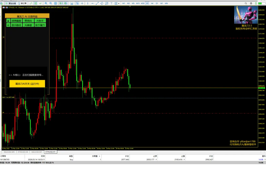 如果说OpenMind和灵渠OS解决的是“机器怎么协作”的问题,那么peaq解决的是“机器怎么赚钱”的问题。peaq是一条专为“机器经济”设计的Layer-1区块链。它的核心理念是:机器不仅是工具,更可以是拥有钱包、签署交易、赚取收入的经济实体。2025年底,peaq生态在香港启动了全球首个“代币化机器人农场”,用自动化机器人种植水培蔬菜。运作模式是:2026年1月,这个农场完成了第一笔收益分发。有用户晒出的收益约为3820 USDT,年化收益测算约18%。不靠代币通胀,靠卖菜赚钱——这种“真实收益”模式,对于习惯看现金流和ROI的交易员来说,是不是特别亲切?peaq的合作伙伴还包括博世、万事达、空客等工业巨头。虽然目前更多是技术验证阶段,但能通过工业级的安全检验,本身就是一种背书。4.伯灵量化:屠龙刀智能AI量化交易系统,纯AI自动交易,和普通EA交易不一样的地方在于,我的系统是实实在在植入了Gemini3.0的大模型,内置了十来年的交易数据,训练数据。是一款真正的,划时代意义的AI之作。不同于普通的AI编程的EA作品,也区分于市面上很多挂羊头卖狗肉的拿个不入流的马丁EA装什么AI科技的代理/资管;屠龙刀是时刻捕捉交易信号,只要赋予一定的风险额度,就只做分内的交易。因此不会爆仓。三、交易员的视角:怎么给这些“操作系统”估值?