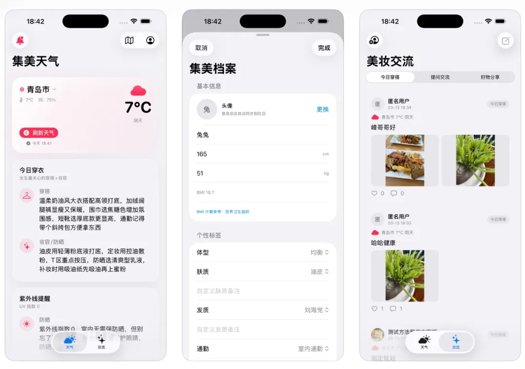 一款专为女生打造的轻量、高颜值、强实用的天气软件,核心是天气 + 穿搭 + 妆容一站式生活助手,安装软件需要iOS16.6及以上系统。