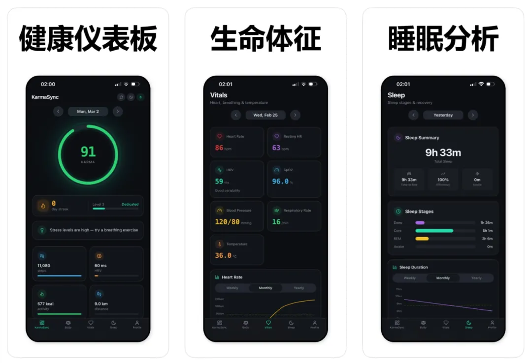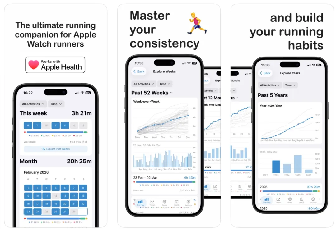 一款将苹果健康数据变成直观实图的工具,支持趋势图表、周 / 月 / 年活动网格查看,还能通过心率储备法做 5 区间心率分析,精准掌握每次运动强度,设备需装有 iOS 17.4 或更高版本。